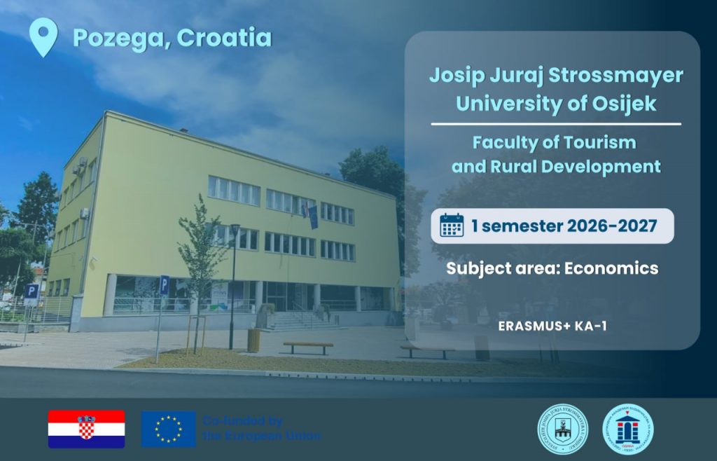 ➖ Josip Juraj Strossmayer University of Osijek, Faculty of Tourism and Rural Development in Pozega (м. Пожега, Хорватія). Предметна область: Економіка.